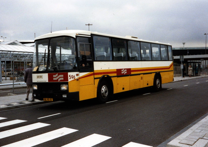 GVB 596, Lijn 245, Schiphol-Centrum, Schiphol Boulevard (Schiphol-Plaza), november 1990.
