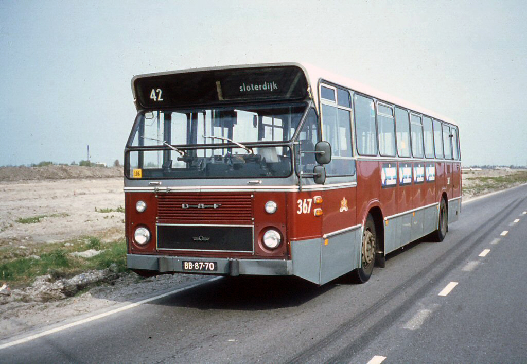 ![]() GVB 367, Lijn 42, Hornweg, 13 april 1981. Fotograaf: onbekend (verzameling Jos van der Klundert). |