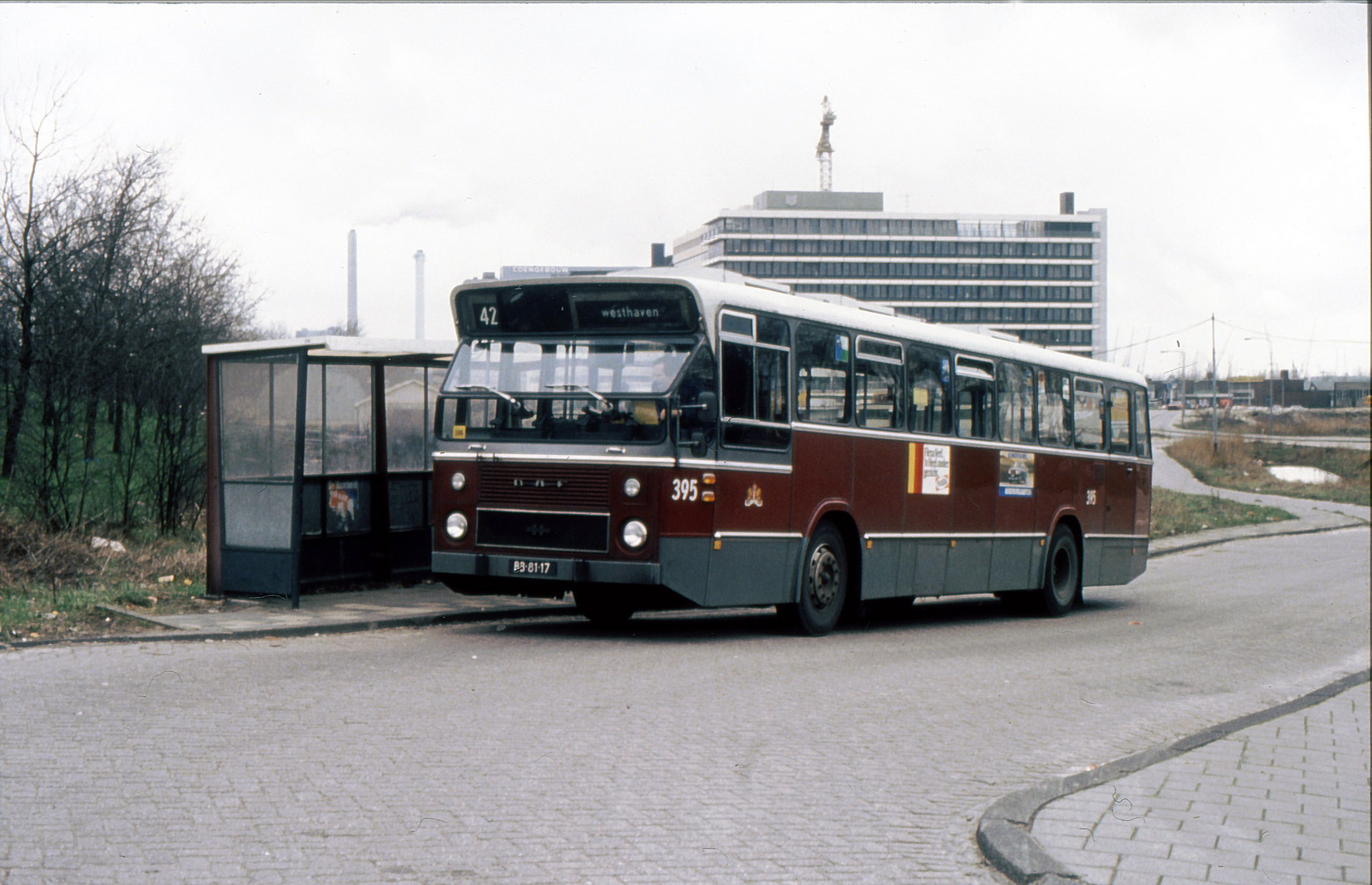 ![]() GVB 395, Lijn 42, Kabelweg (standplaats Sloterdijkstation), 17 maart 1981. Foto: Johan Waaijer. |