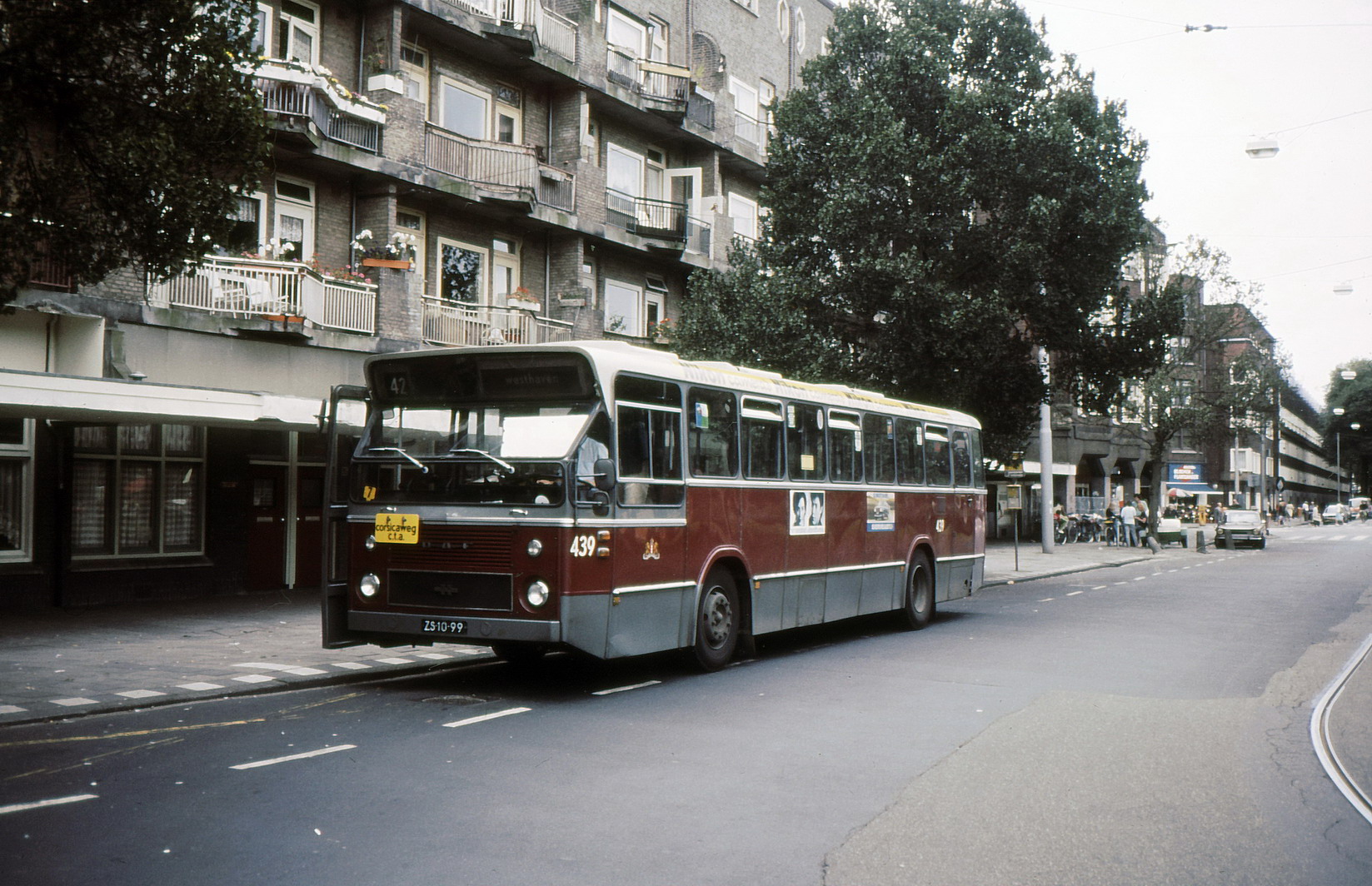 ![]() GVB 439, Lijn 42, Mercatorplein, 27 augustus 1981. Foto: René van Lier. |