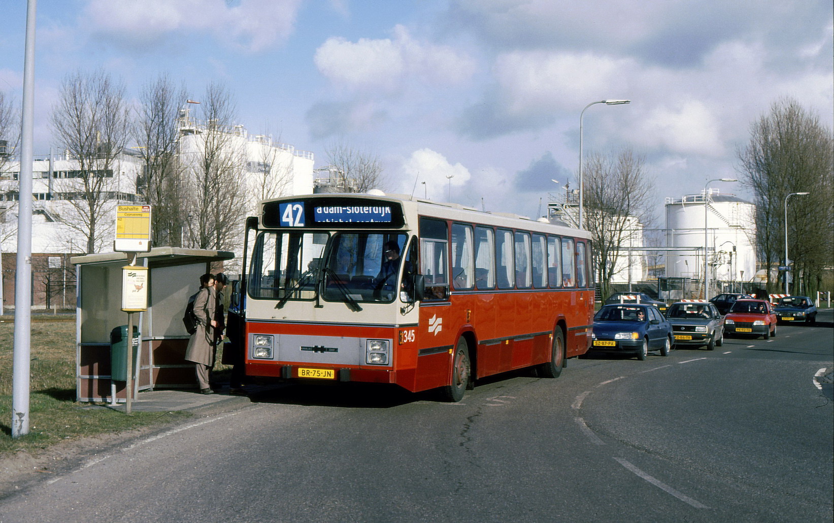 ![]() GVB 345, Lijn 42, Kretaweg, 4 maart 1988. Foto: René van Lier. |
