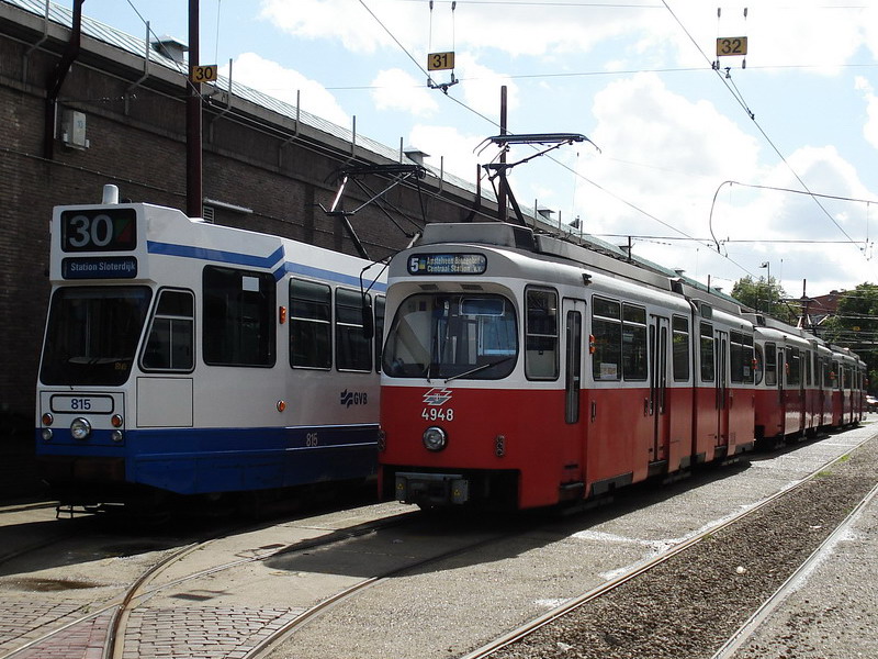 GVB 4948 naast 815, Remise havenstraat, 20 juli 2008