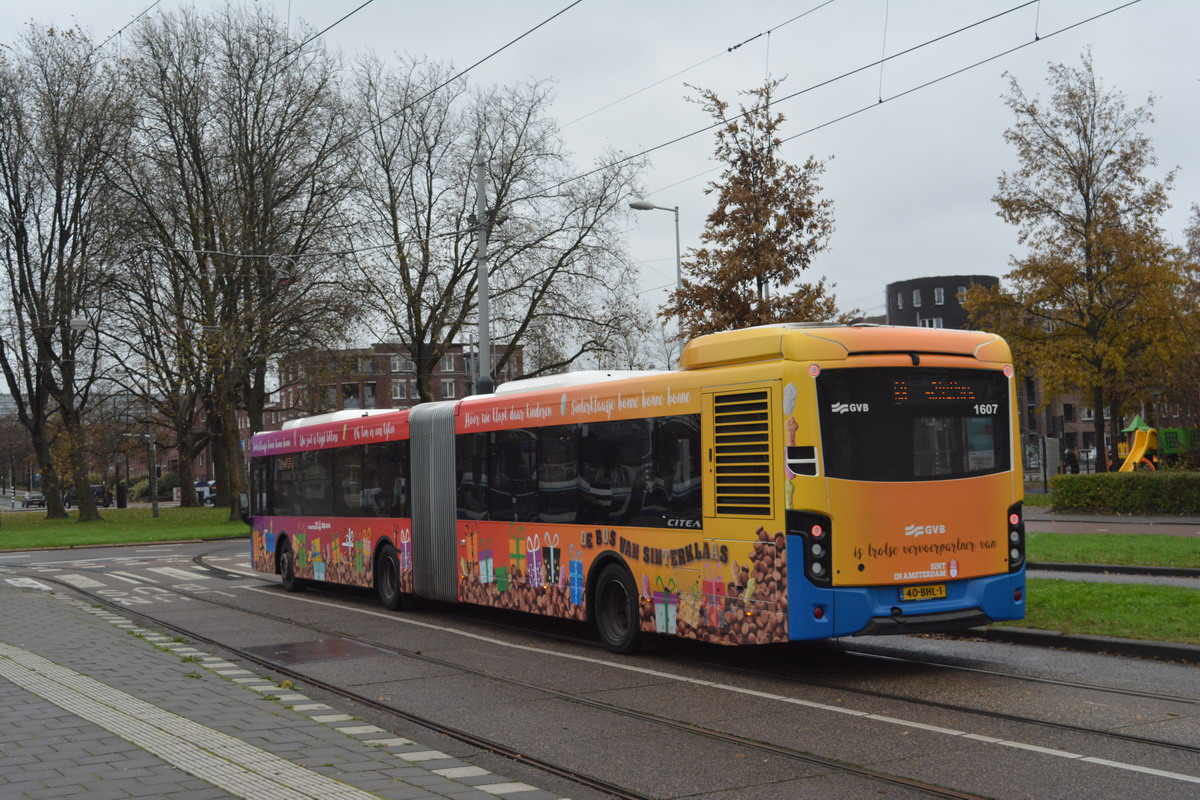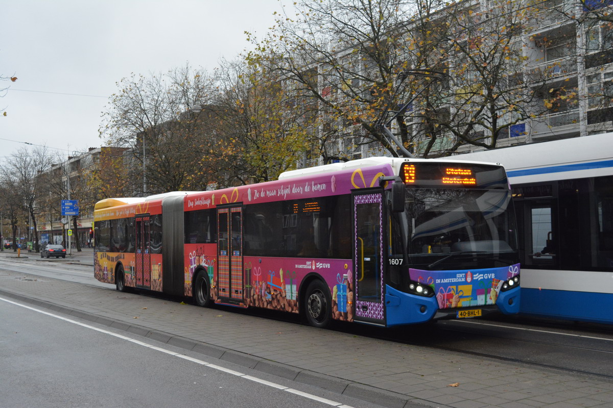 Vanwege de jaarlijkse intocht van Sinterklaas reed GVB tijdens die intocht al jaren met een bus met zieke kinderen uit ziekenhuizen mee in die optocht. In 2017 werd de 1607 daarvoor gebruikt, die daartoe werd voorzien van een totaalreclamebestickering voor GVB en de Sinterklaas-festiviteiten, als Sinterklaas-pakjesbus. De bus reed van 21 november t/m 8 december 2017 in deze uitmonstering rond vanuit Garage West. Op 9 december 2017 werd de reclame weer verwijderd.