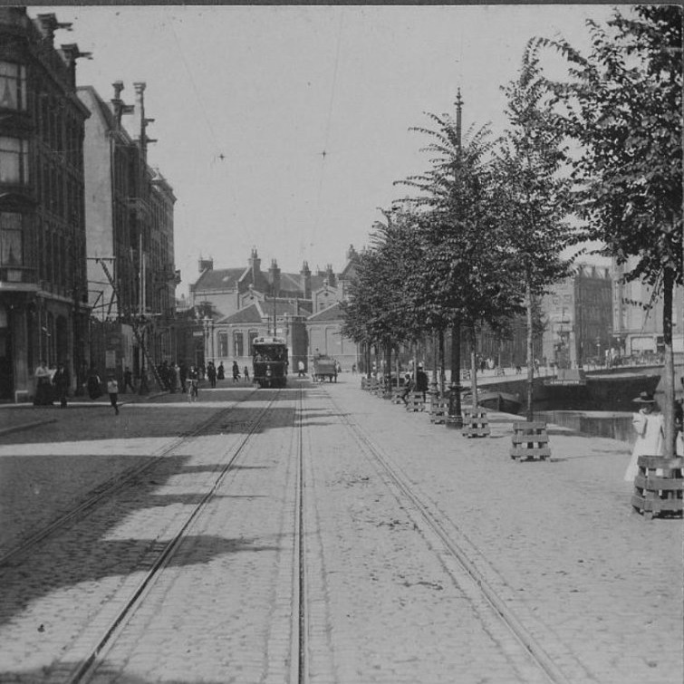 ![]() GTr. 4 (nog met trolleystang), Lijn 10, Planciusstraat (standplaats Zoutkeetsgracht), periode 1900-1902. Fotograaf: onbekend (verzameling René van Lier). |