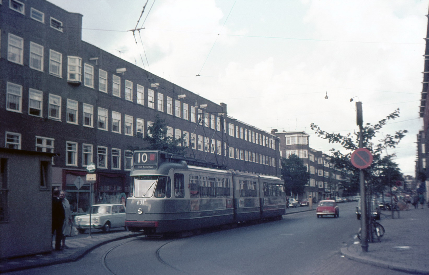 ![]() GVB 631, Lijn 10, Molukkenstraat, jaren "60. Fotograaf: onbekend (verzameling Johan Waaijer). |