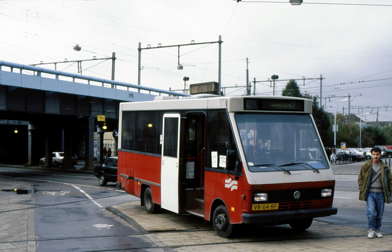 ![]() GVB 577, Pendelbuslijn 6/10, Insulindeweg (standplaats Muiderpoortstation), 18 november 1994. Foto: René van Lier. |