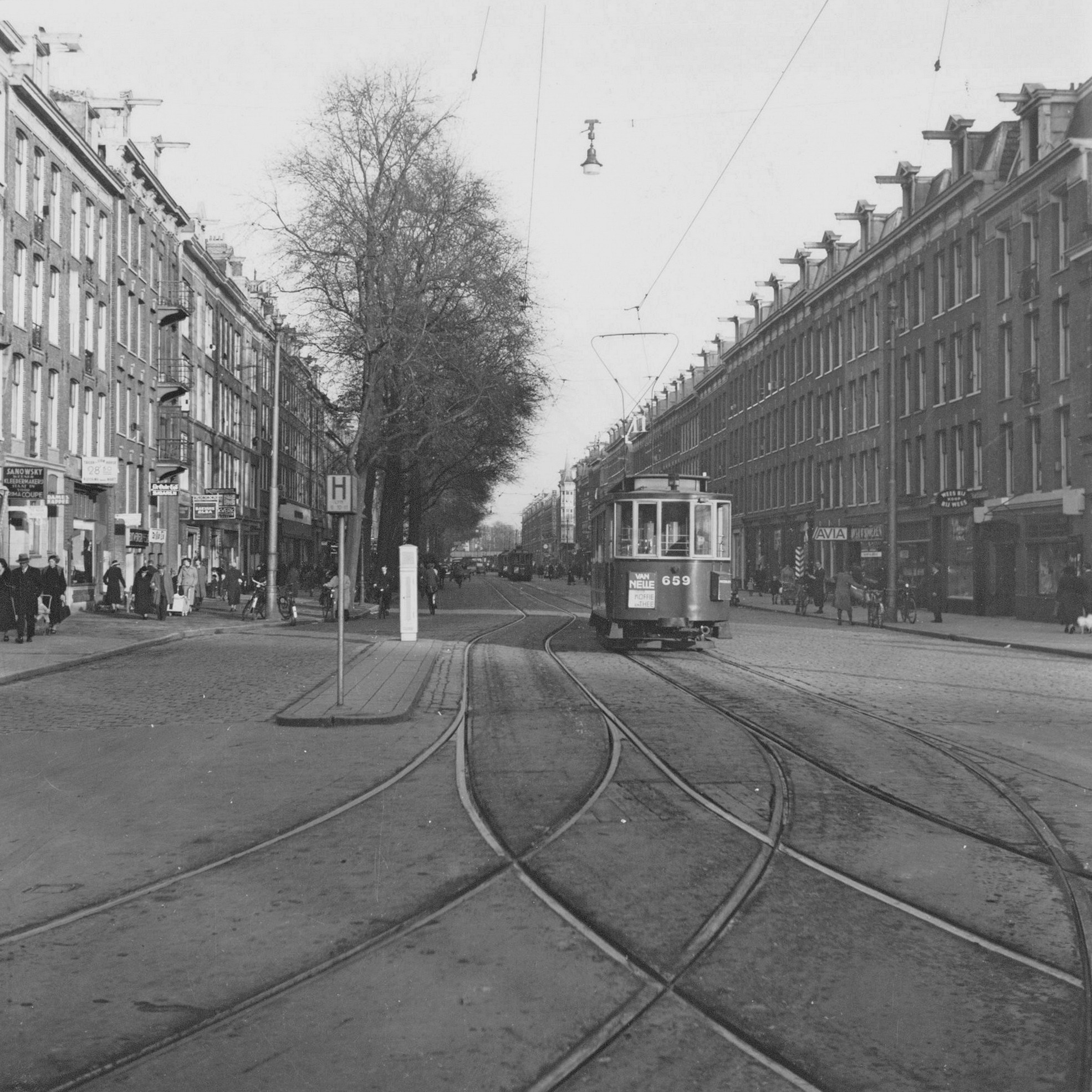 ![]() GTr. 659+emr., Lijn 11, Eerste van Swindenstraat, 1938. Foto: Dienst Publieke Werken - afdeling Stadsontwikkeling. |