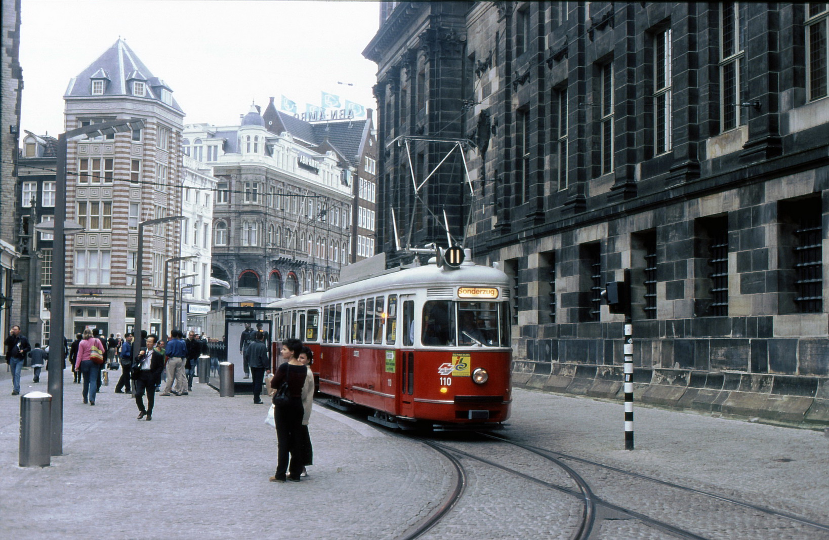 ![]() AOM museumtram WVB Wien-110+1810, Lijn 11, Mozes & Aäronstraat, 14 september 2002. Foto: René van Lier. |