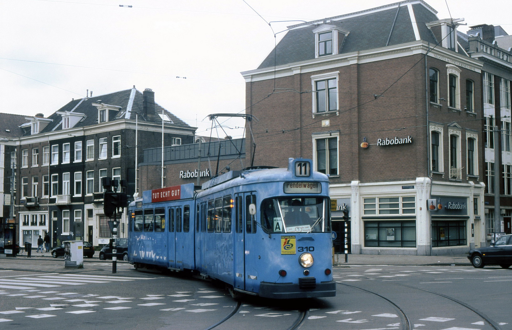 ![]() AOM museumtram KVG Kassel-310, Lijn 11, Weteringschans/Frederiksplein, 14 september 2002. Foto: René van Lier. |
