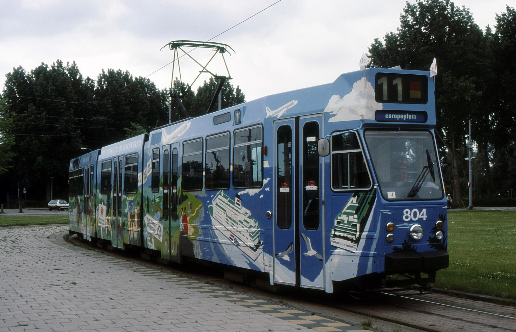 ![]() GVB 804, Lijn 11, Slotermeerlaan, 16 juli 1991. Thematram "Brits Verkeersburo". Foto: René van Lier. |