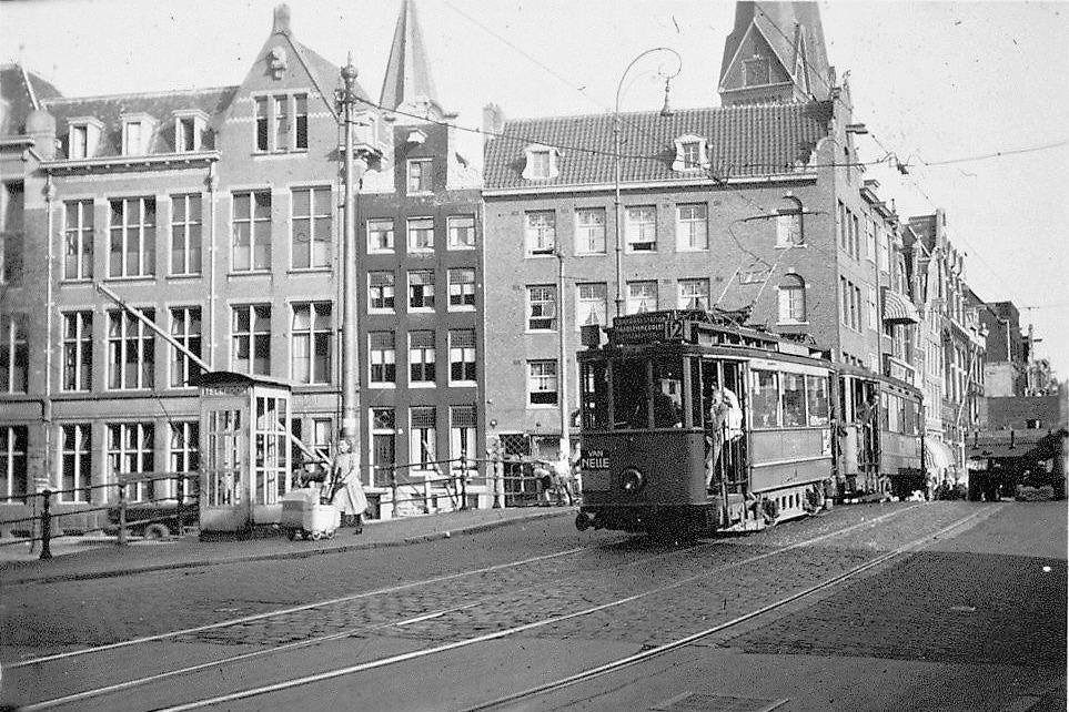 GVB Grootbordes tramstel, Lijn 12, Eenhoornsluis, eind jaren "40.