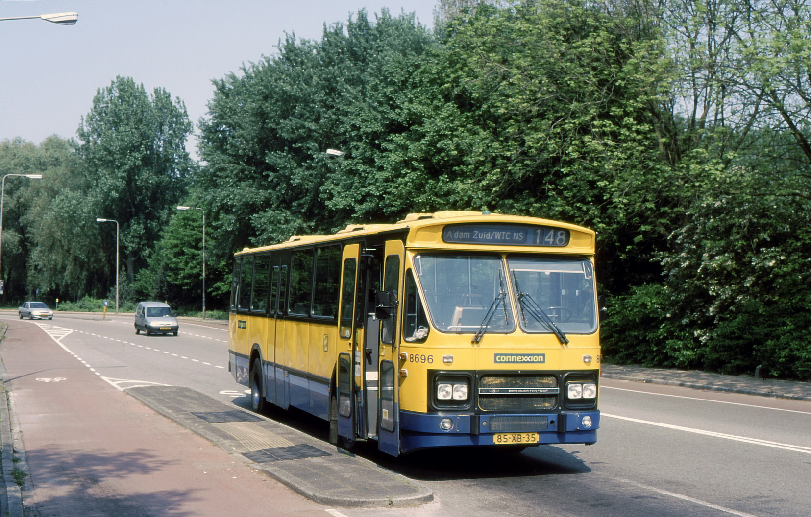 ![]() NZH 8696, GVB-Lijn 148, Amstelveen, Groenelaan (standplaats Ziekenhuis Amstelveen), 9 mei 2000. Foto: Ren van Lier. |