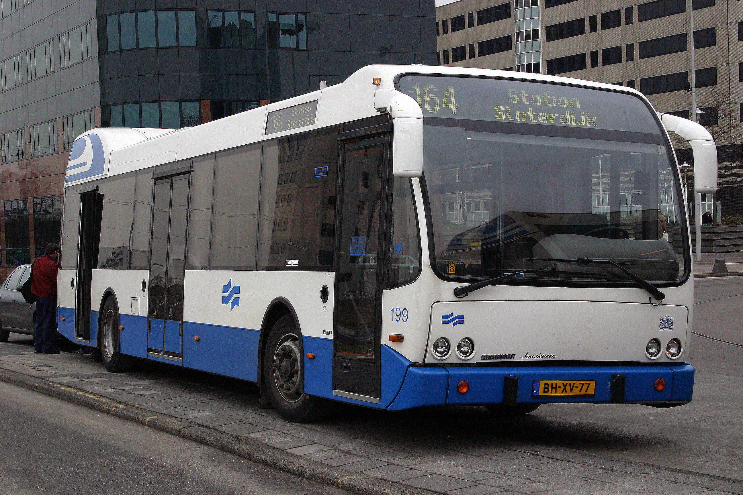 ![]() GVB 207, Lijn 164, Schiphol-Centrum, Schiphol Boulevard, 18 oktober 2005. Fotograaf: onbekend (verzameling Jos van der Klundert). |