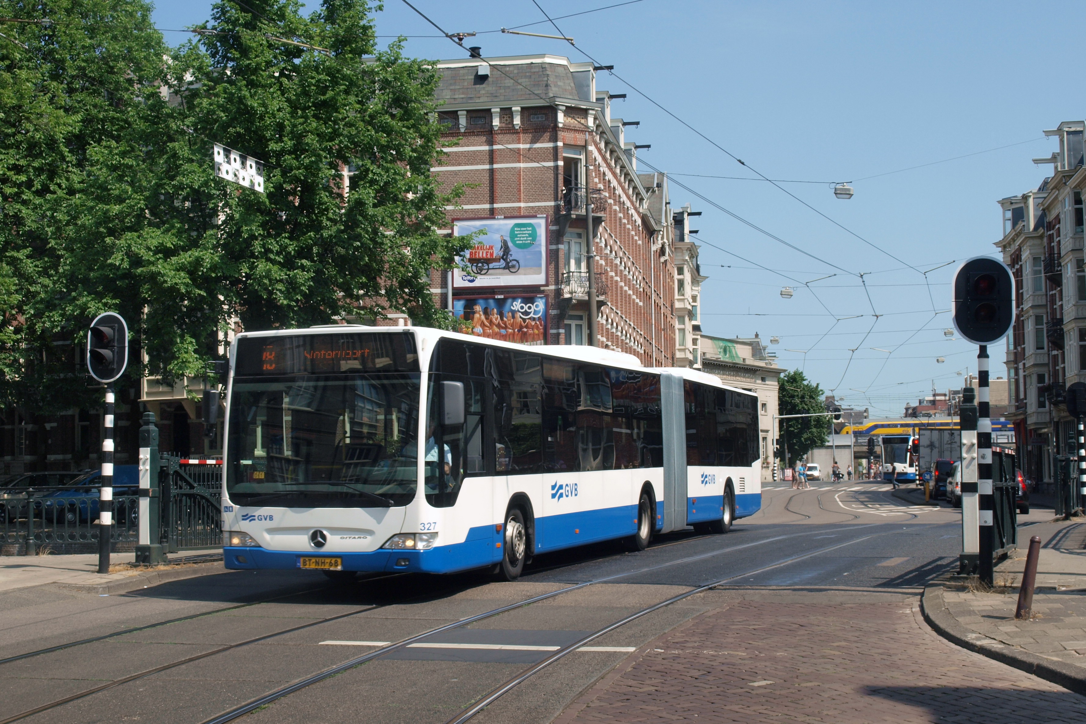 GVB 327, Lijn 18, Marnixstraat (Bullebakbrug), 10 juli 2010.