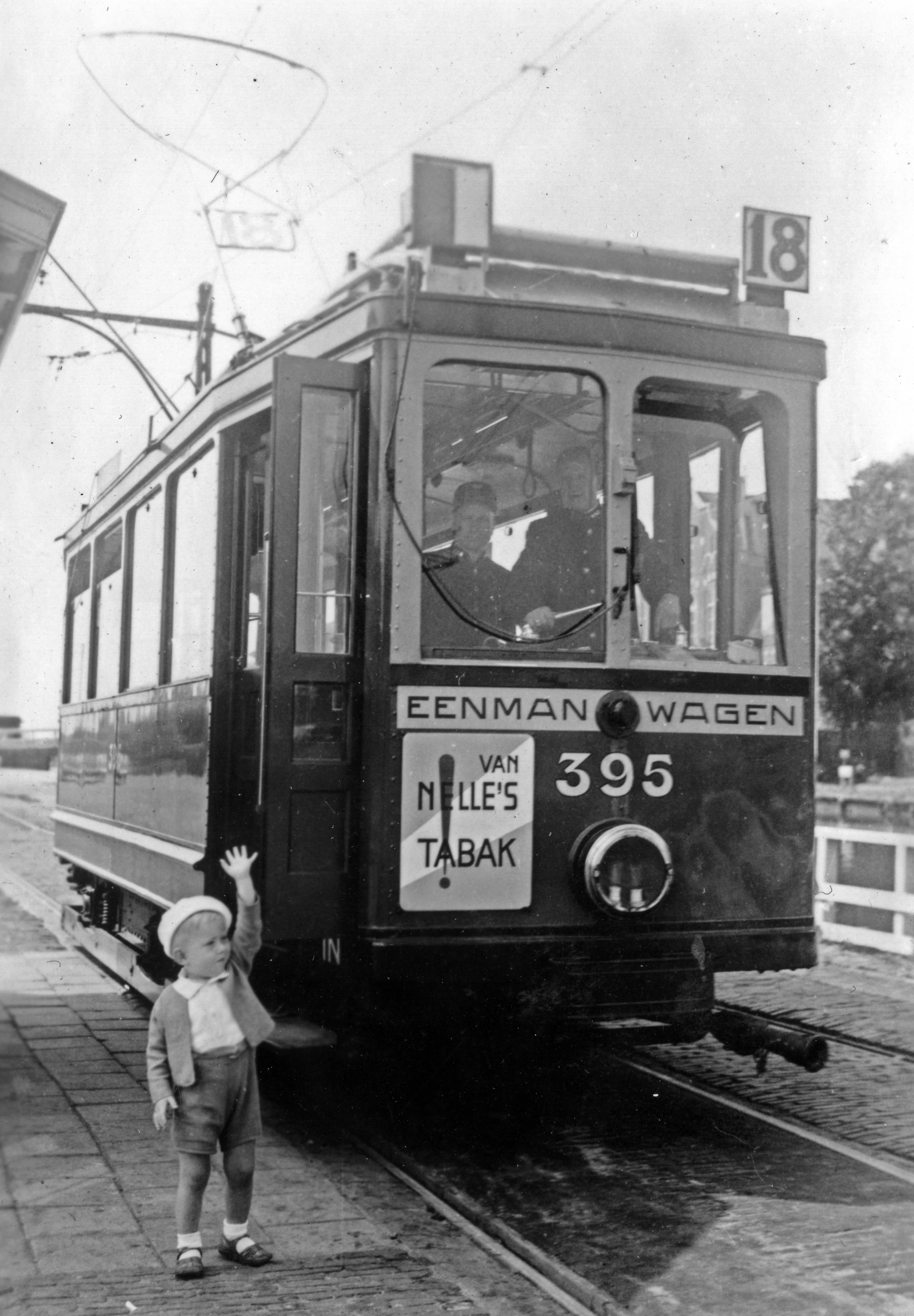 GTr. 395, Lijn 18, Haarlemmerweg (bij de van Hallstraat), 1939.