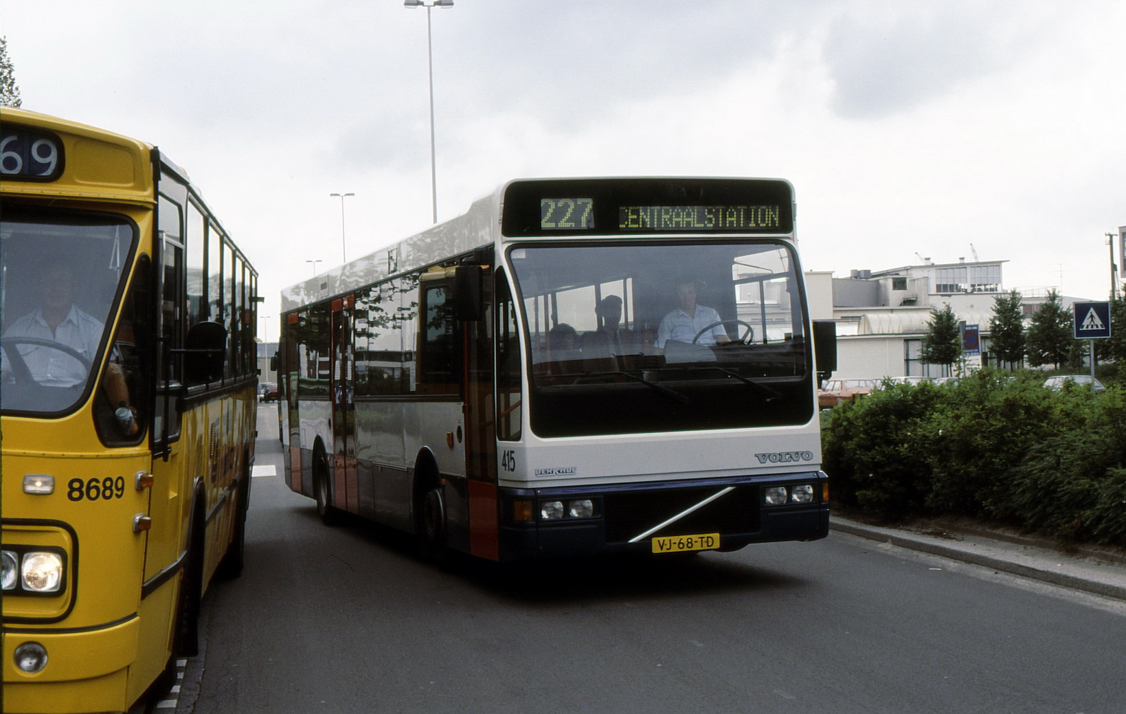![]() GVB 445, Lijn 227, Schiphol-Oost, Stationsplein, 12 juli 1991. Foto: René van Lier. |