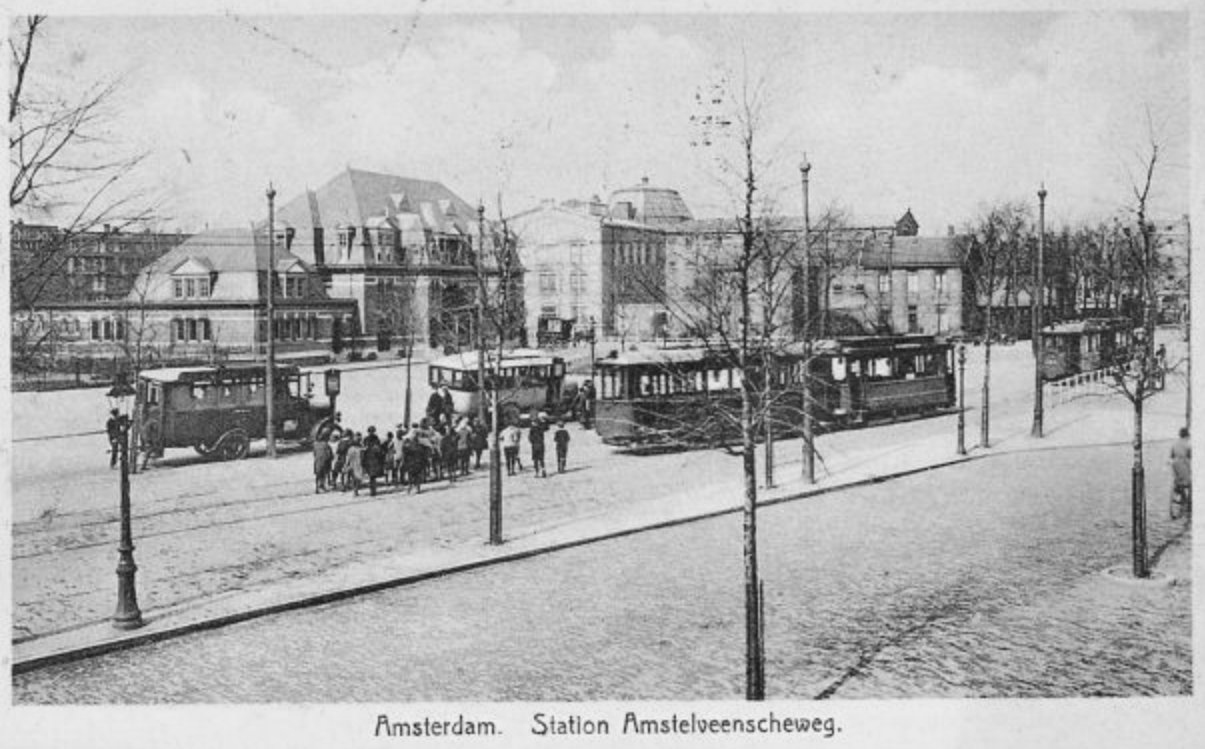 ![]() GTr. tramstel, Lijn 23, Amstelveenseweg (Station Willemspark), jaren "20. Prentbriefkaart. |