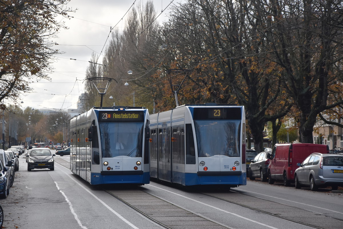 GVB 2129 en 2079, Lijn 23, Rooseveltlaan, 13 november 2021. Foto: Ren van Lier. |