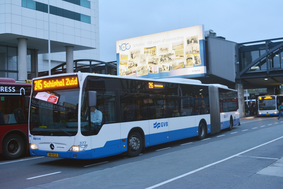 GVB 377, Lijn 245, Schiphol-Centrum, Schiphol Boulevard (Schiphol-Plaza), 28 juli 2016.