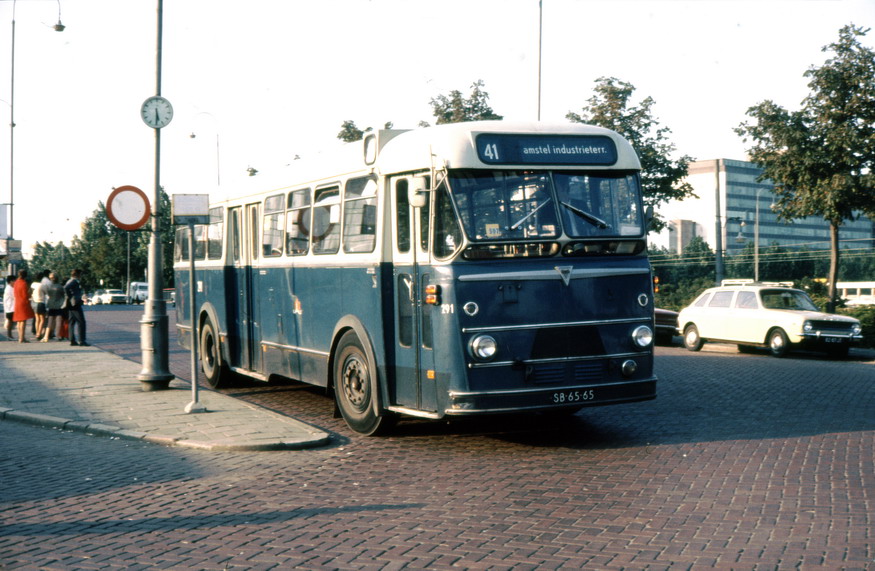![]() GVB 291, Lijn 41, Julianaplein (standplaats Amstelstation), circa 1971. Fotograaf: Frans van Britsom. |