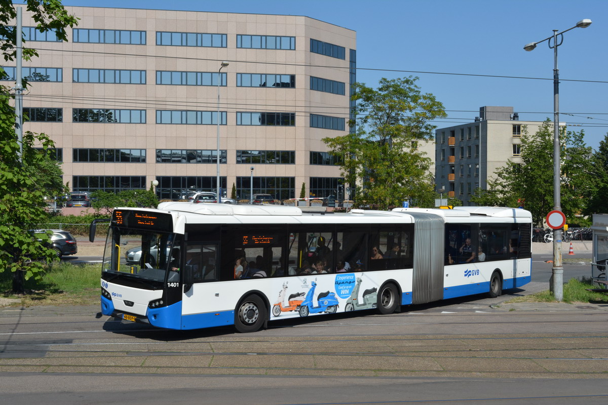 GVB 1401, Lijn 55, Julianaplein, 30 juni 2015. Fotograaf: René van Lier. |