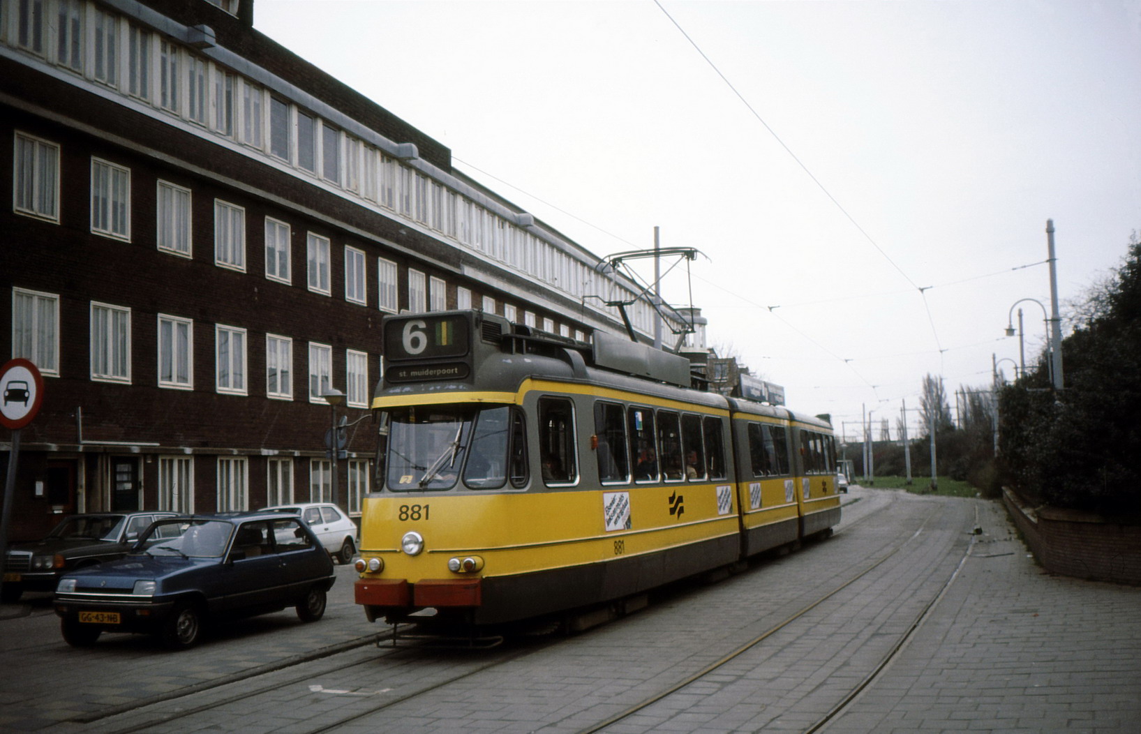 ![]() GVB 881, Lijn 6, Celebesstraat, jaren "80. Foto: Johan Waaijer. |