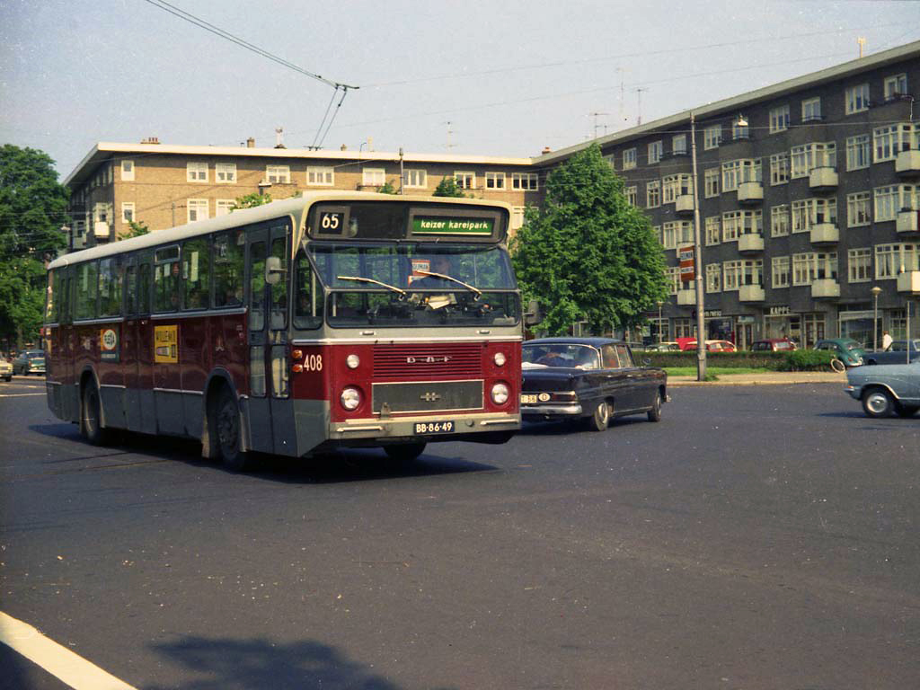 ![]() GVB 408, Lijn 65, Stadionplein, 1970. Foto: Ab van Donselaar. |