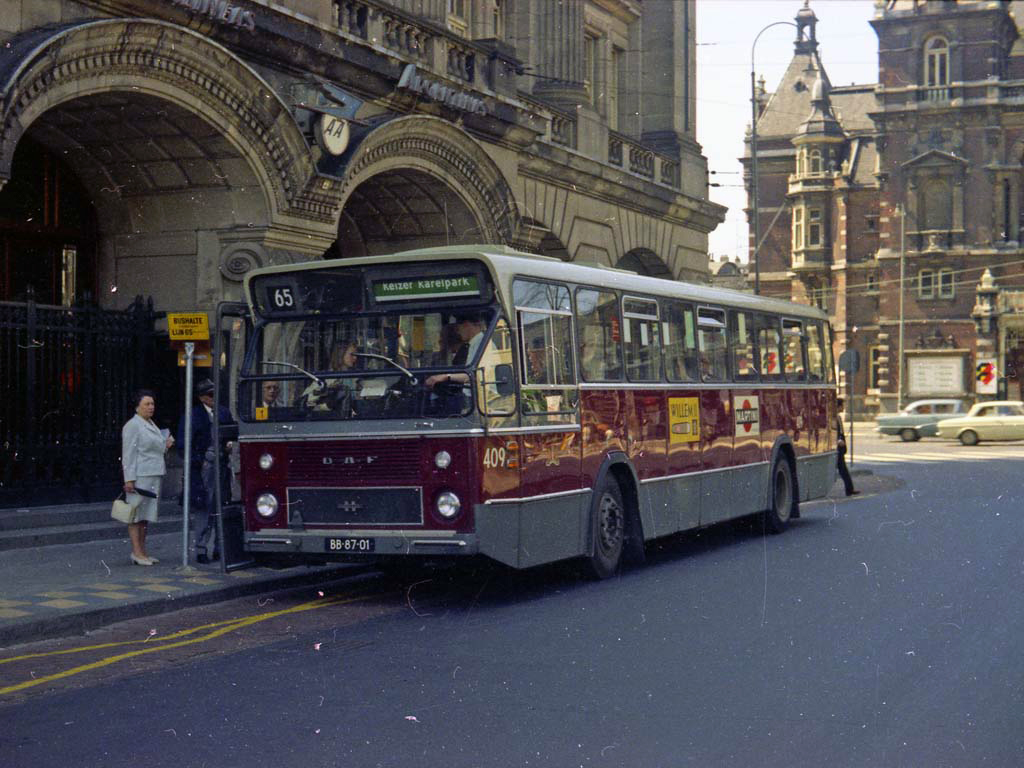 ![]() GVB 409, Lijn 65, Kleine Gartmanplantsoen (standplaats Leidseplein), 1970. Foto: Ab van Donselaar. |
