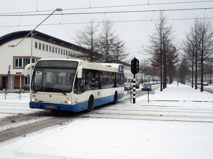 ![]() GVB 140, Lijn 95, Laan van Vlaanderen (Westzijde), 2 december 2010. Foto: René van Lier. |