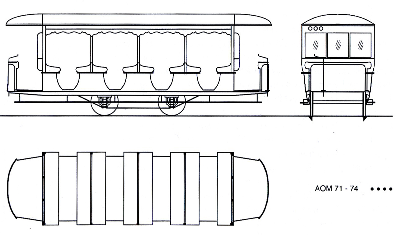 De eerste open rijtuigen van de AOM waren tamelijk groot. De remblokken zaten aan de binnenkant van de wielen. De wagens waren bij aflevering geheel groen uitgevoerd en bestemd voor extra vervoer en de dienst op de drukke trajecten.