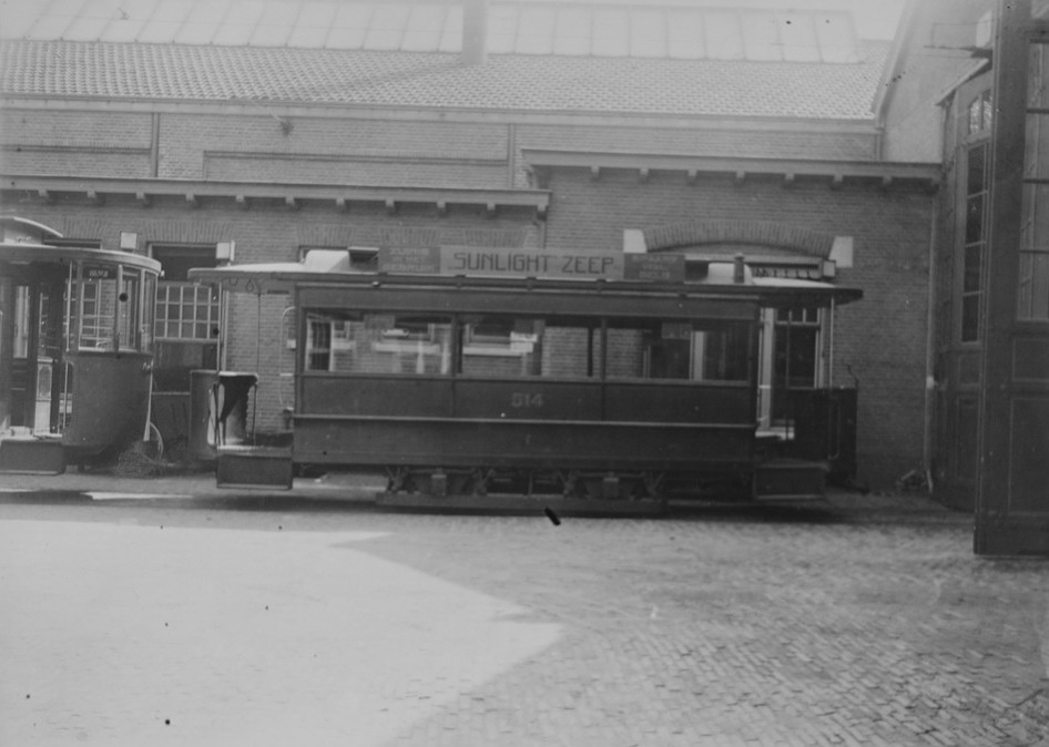 Aanhangrijtuig 514, Remise Tollensstraat, oktober 1920. Aanhangrijtuig 561, Remise Tollensstraat, oktober 1920.