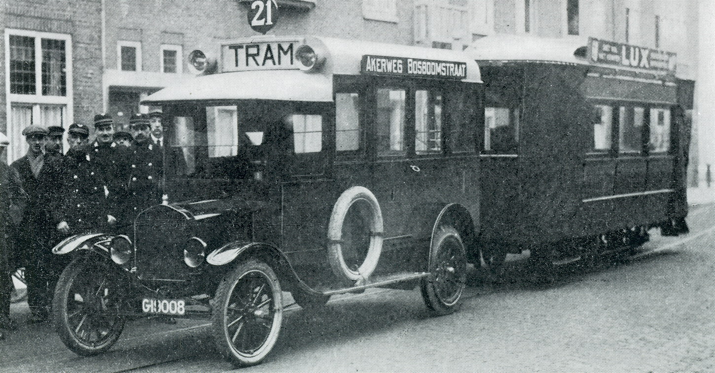 tractor 3 + paardentramrijtuig 7, Lijn 21, Jacob Marisstraat, 1922.