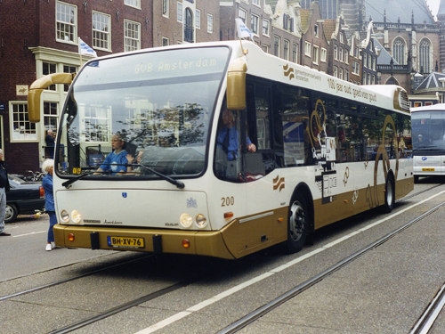 Bus 200 werd vanwege het eeuwfeest van het gemeentelijke trambedrijf tot gouden bus beplakt en in die uitvoering op 17-04-2000 officieel onthuld.