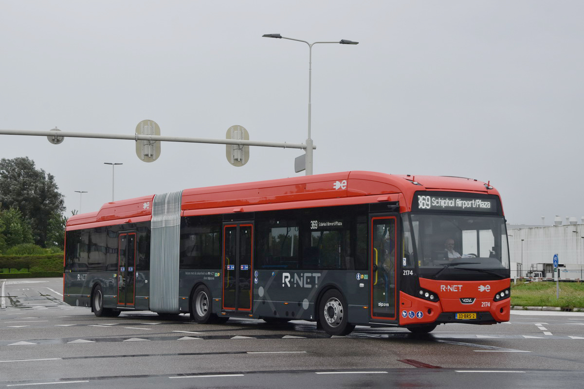 Op 06-07-2021 kwam voor het eerst een nieuwe elektrische bus in RNet-uitvoering in de passagiersdienst, waarbij de eer viel aan de 2174, die die dag als 369-12 op dienst kwam. In de vooravond raakte de bus met laadproblemen defect en werd uitgeruild.