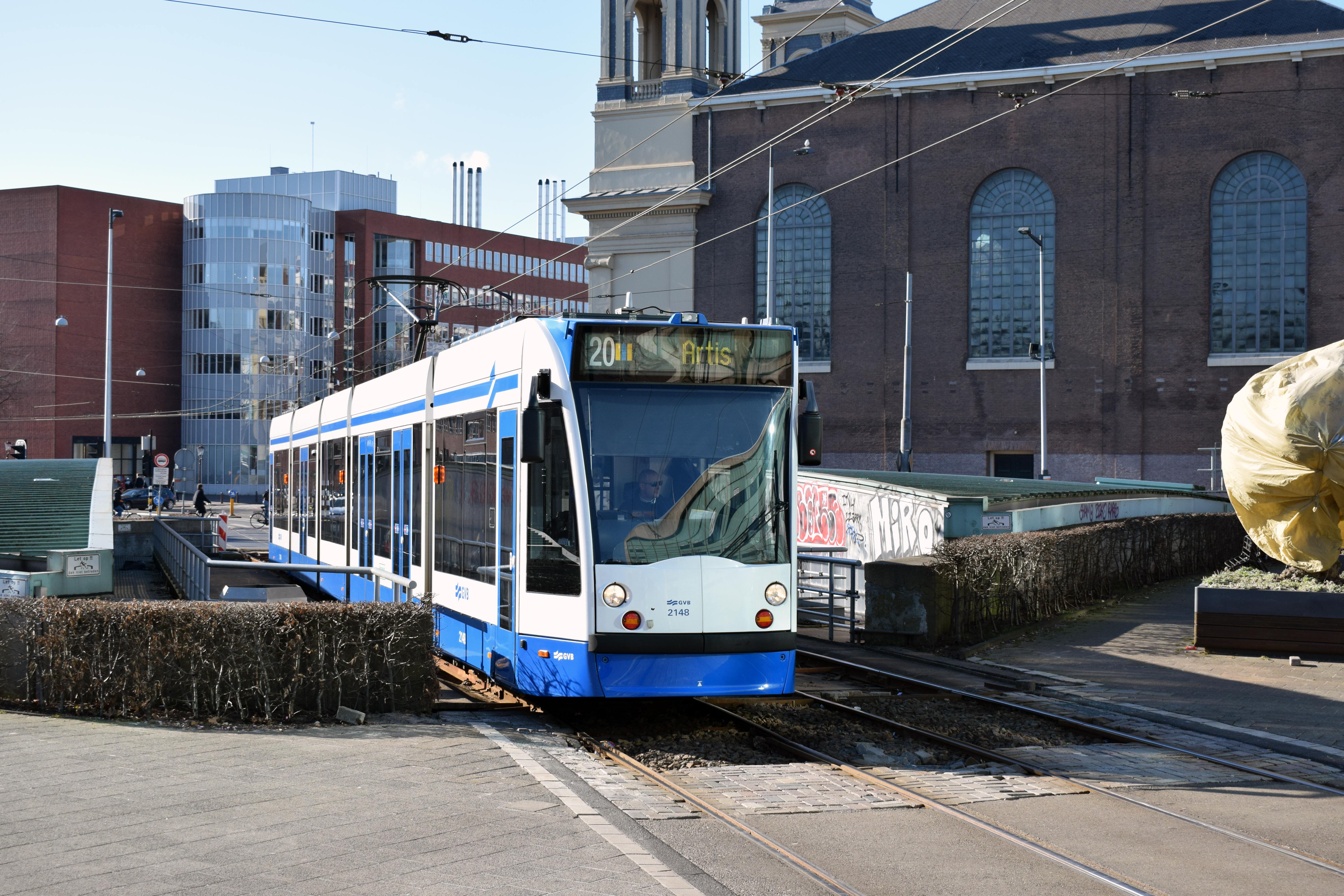 ![]() GVB 2148, Lijn 20, Mr. Visserplein, 25 februari 2018. Foto: Fabrice Kley. |