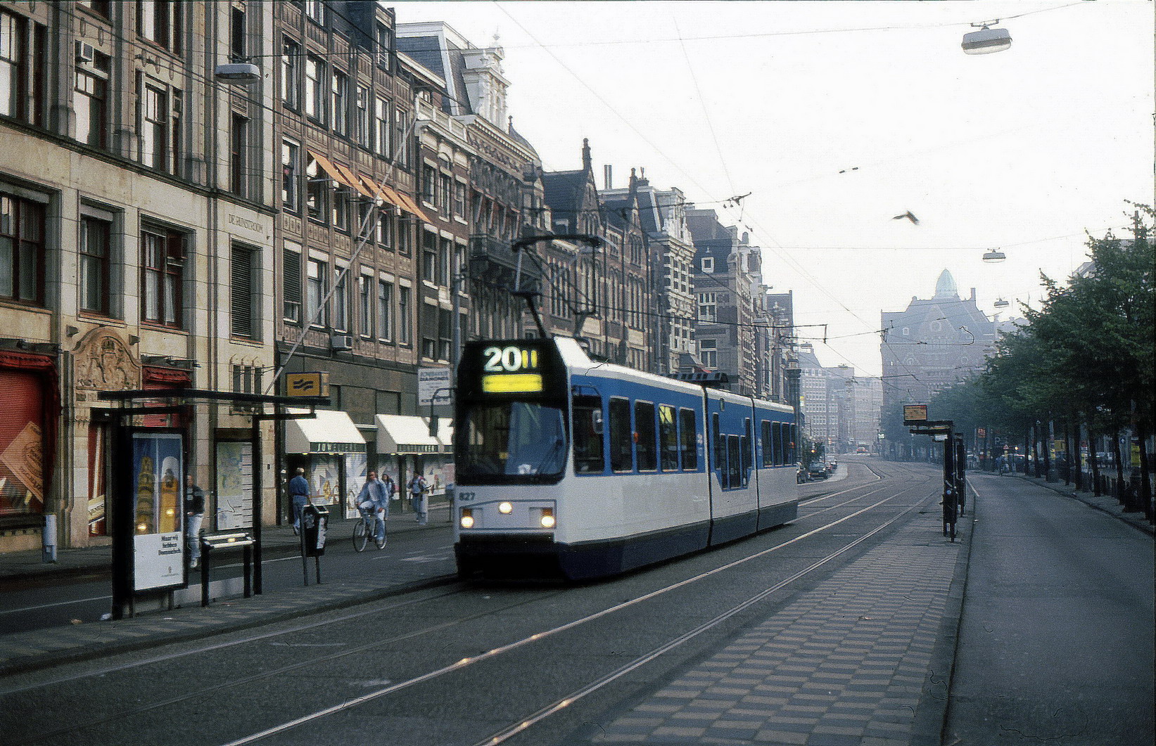 ![]() GVB 827, Lijn 20, Rokin, 1991 Foto: Johan Waaijer. |