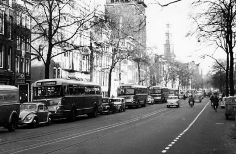 ![]() GVB Blauwe Bus, Lijn 20, Rozengracht, 1960. Fotograaf: onbekend (verzameling René van Lier). |