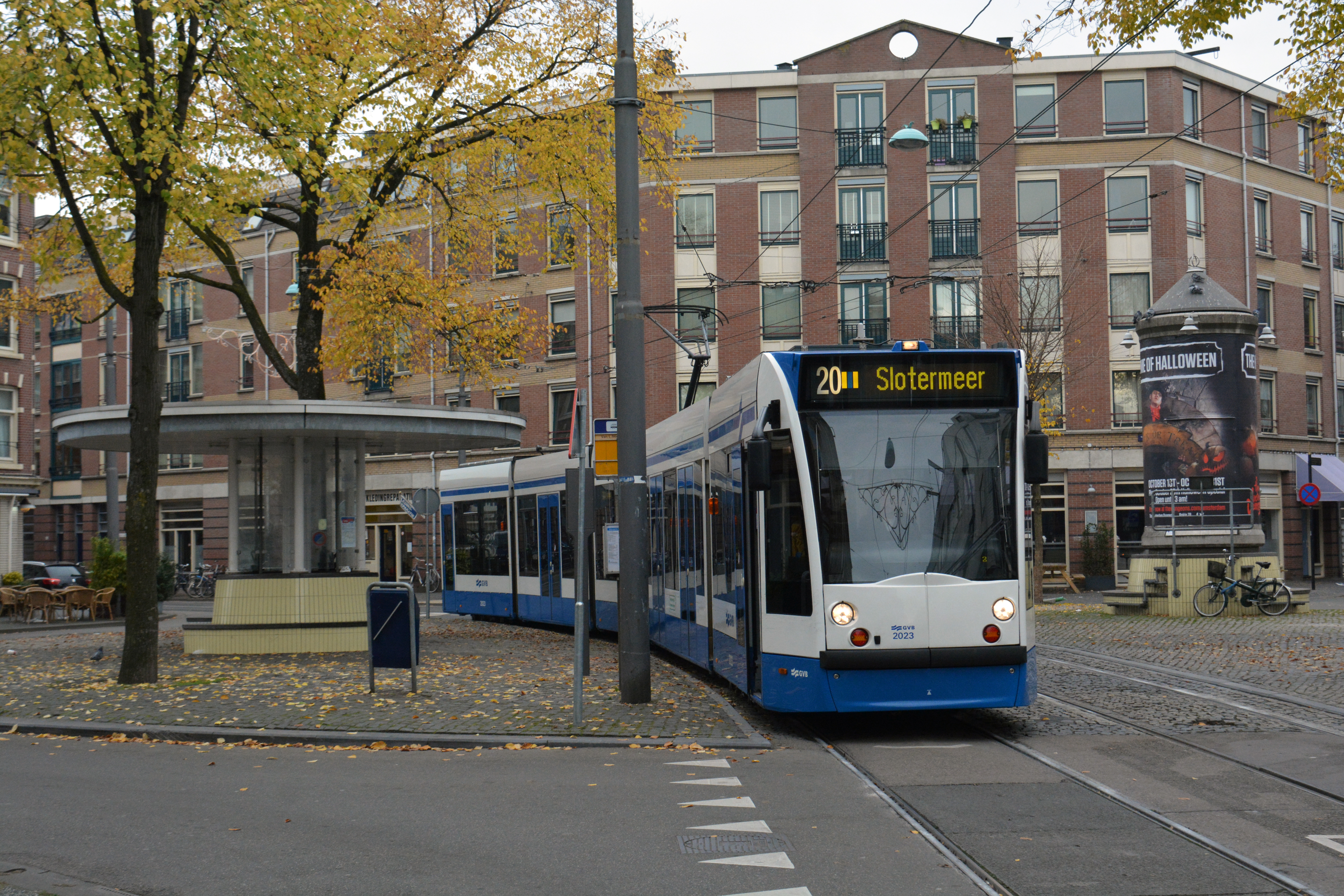 ![]() GVB 2023, Lijn 20, van Limburg Stirumplein, 30 oktober 2016. Foto: René van Lier. |