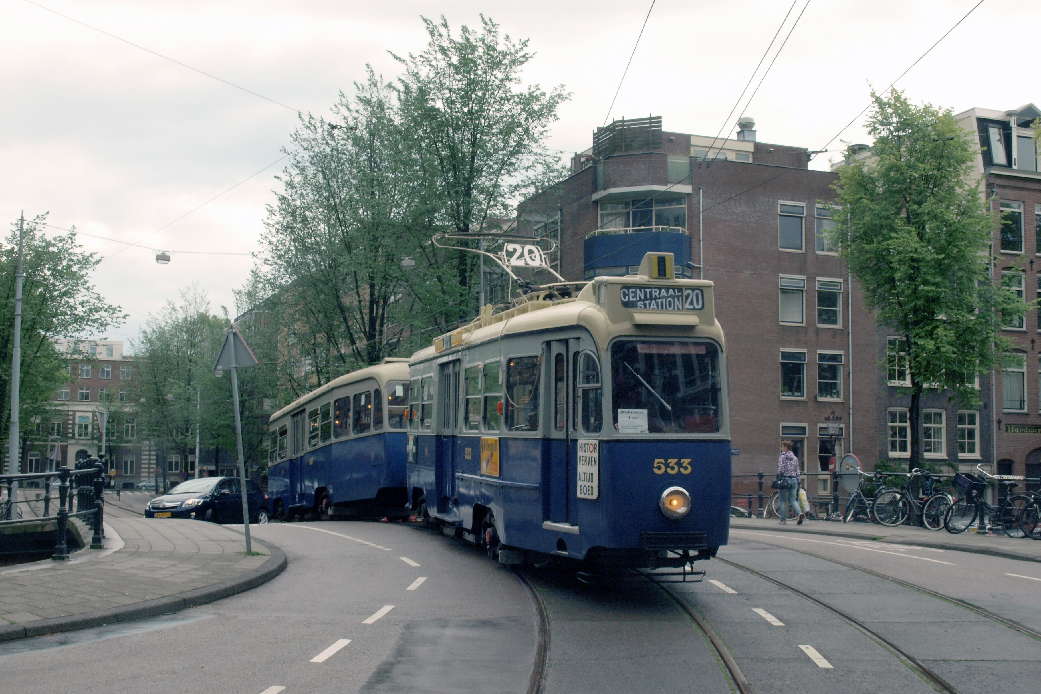 ![]() EMA-museumstel GVB-533+987, Touristtramlijn 20, Roetersstraat, 17 juli 2011. Foto: René van Lier. |