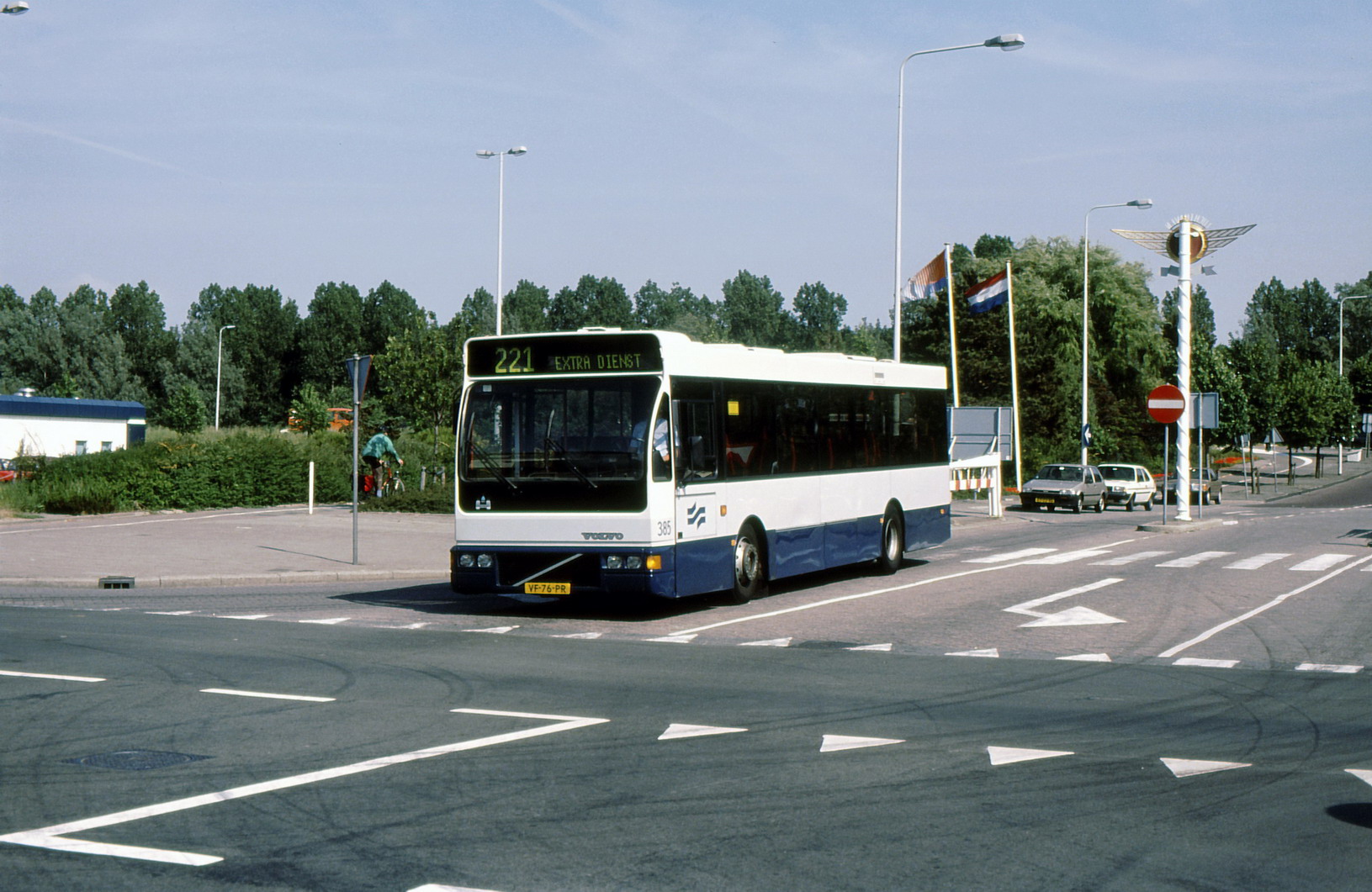 ![]() GVB 385, Lijn 221, Schiphol-Oost, Poortstraat, 31 mei 1990. Foto: Johan Waaijer. |
