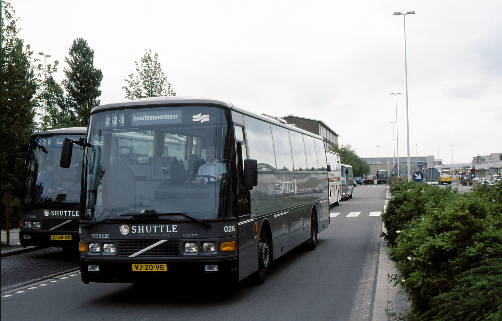 ![]() GVB 026, Lijn 221, Schiphol-Oost, Stationsplein, 12 juli 1991. Foto: René van Lier. |
