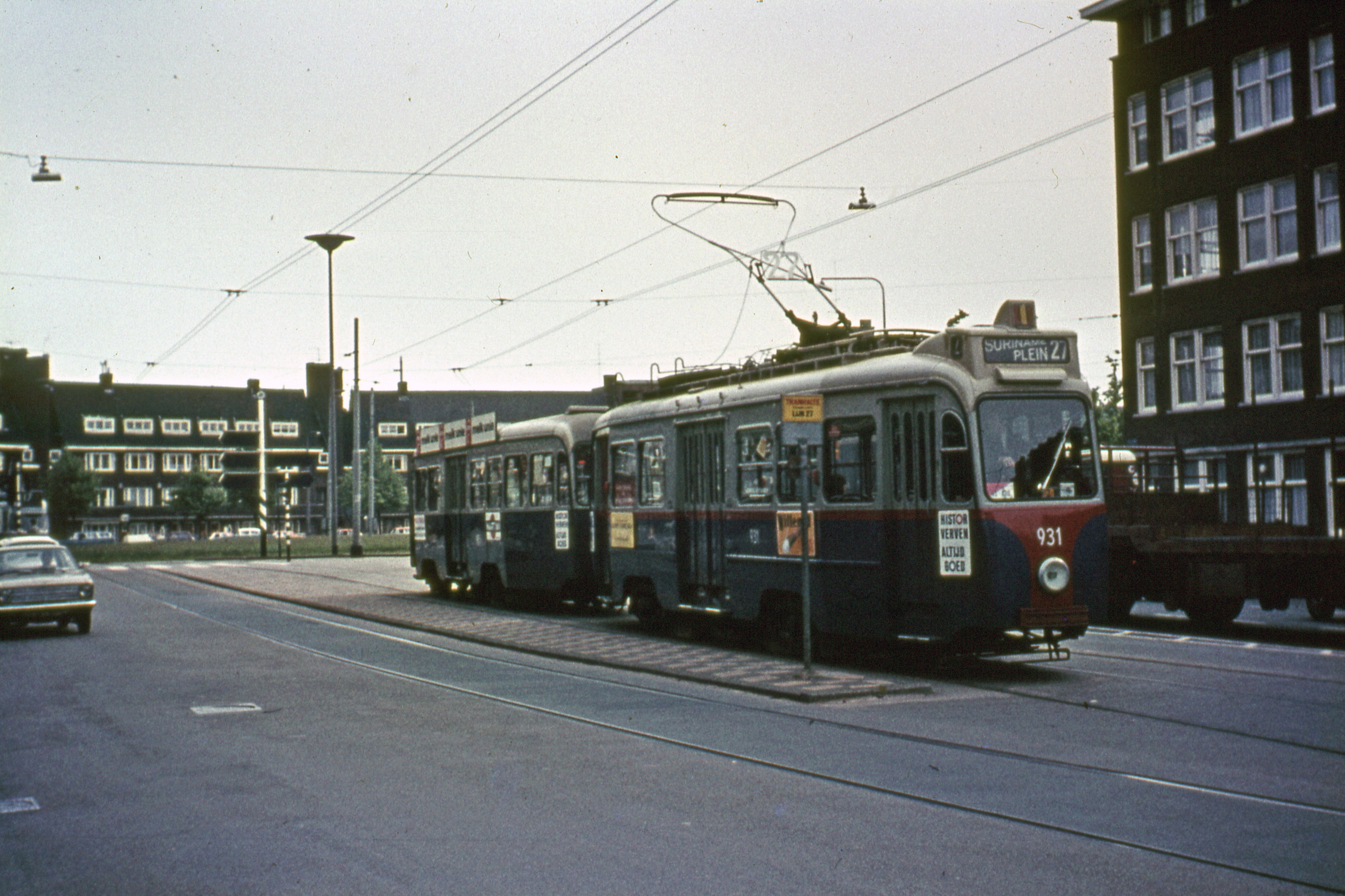 ![]() GVB 931+992, Lijn 27, Hoofdweg (standplaats Surinameplein), circa 1967/1968. Fotograaf: onbekend (verzameling René van Lier). |
