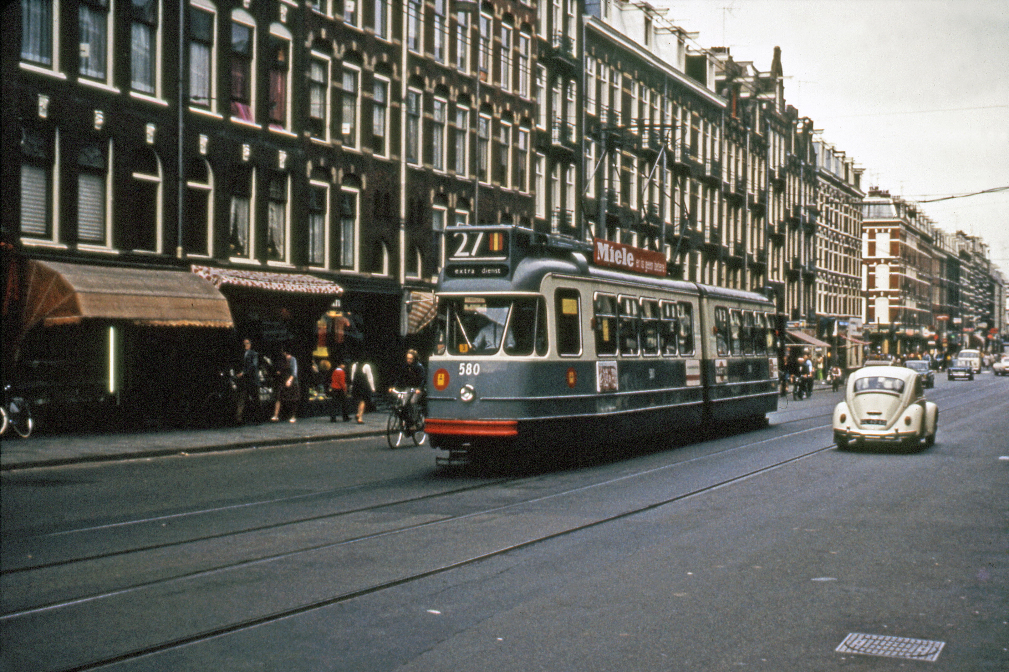 ![]() GVB 580, Lijn 27, Kinkerstraat, 1971. Fotograaf: onbekend (verzameling René van Lier). |
