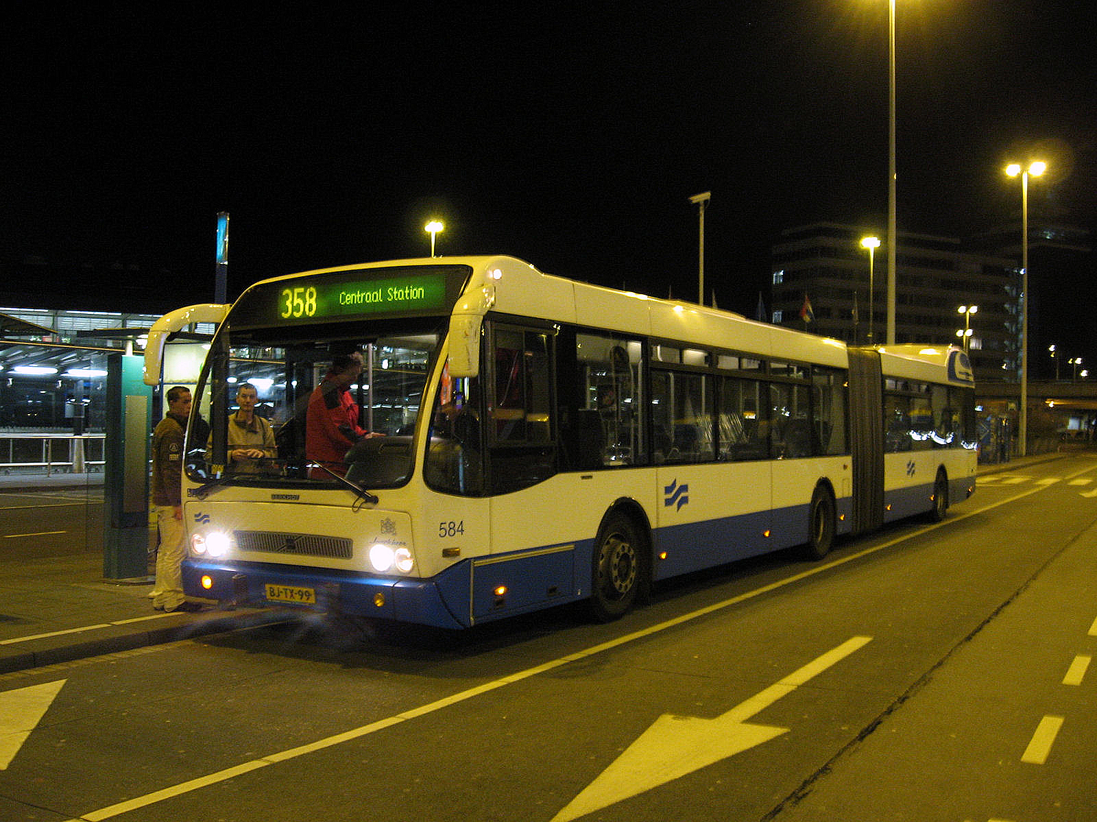 ![]() GVB 584, Nachtbuslijn 358, Schiphol-Centrum, Schiphol Boulevard (Schiphol Plaza), 4 november 2007. Fotograaf: onbekend (verzameling Jos van der Klundert). |