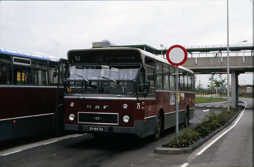 ![]() GVB 75, Lijn 53, Meibergdreef (standplaats Academisch Medisch Centrum), 27 mei 1983. Foto: RuudGr (Flickr.com). |
