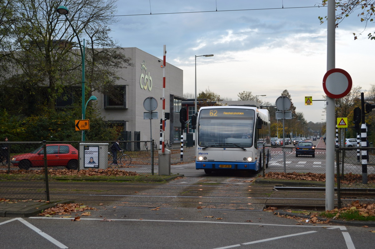 GVB 259, Lijn 62, Buitenveldertselaan (Bussluis De Cuserstraat), 12 november 2014.