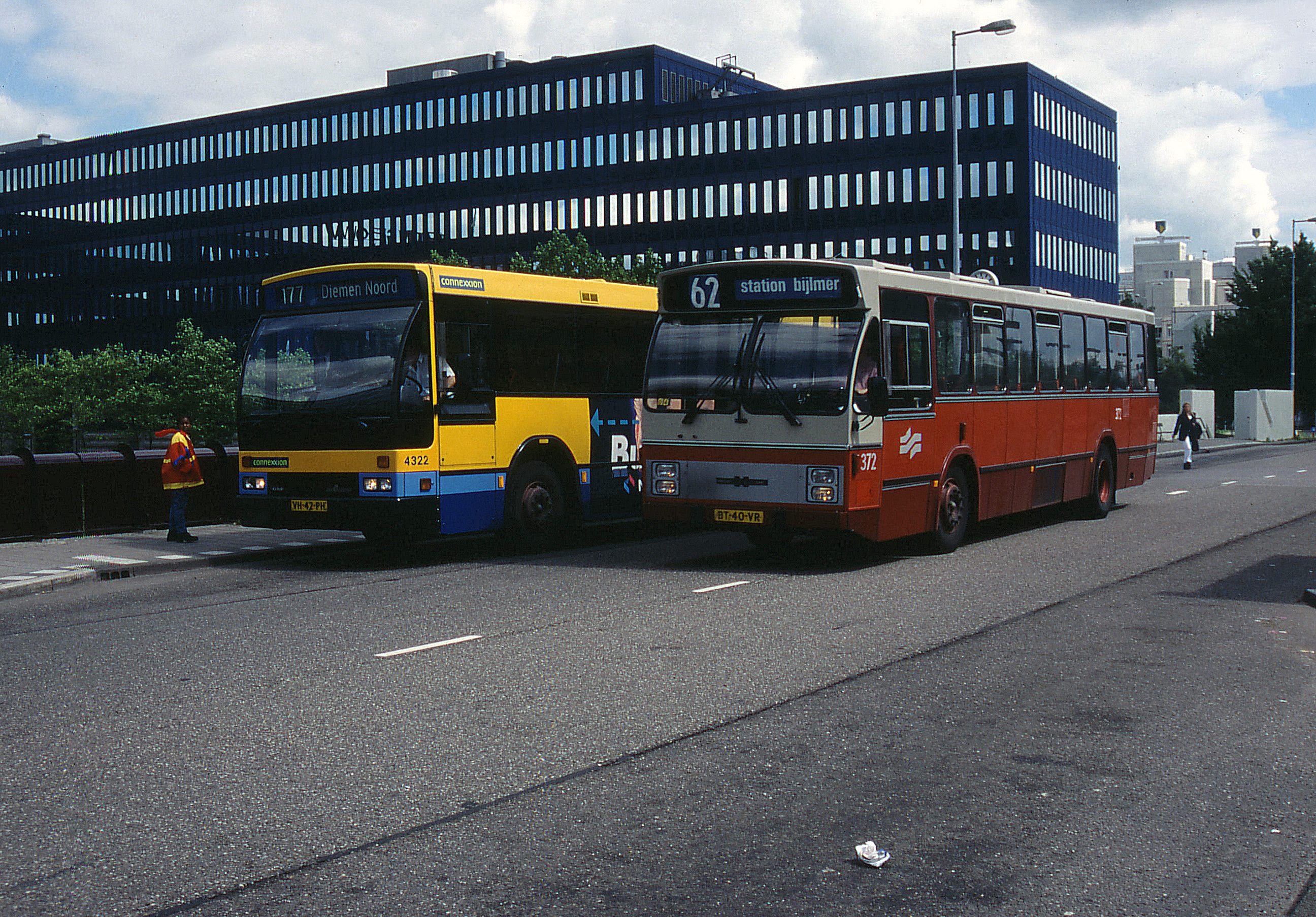 GVB 372 & Connexxion 4322, Lijn 62 & 177, Busstation Bijlmer, 11 juni 1999.