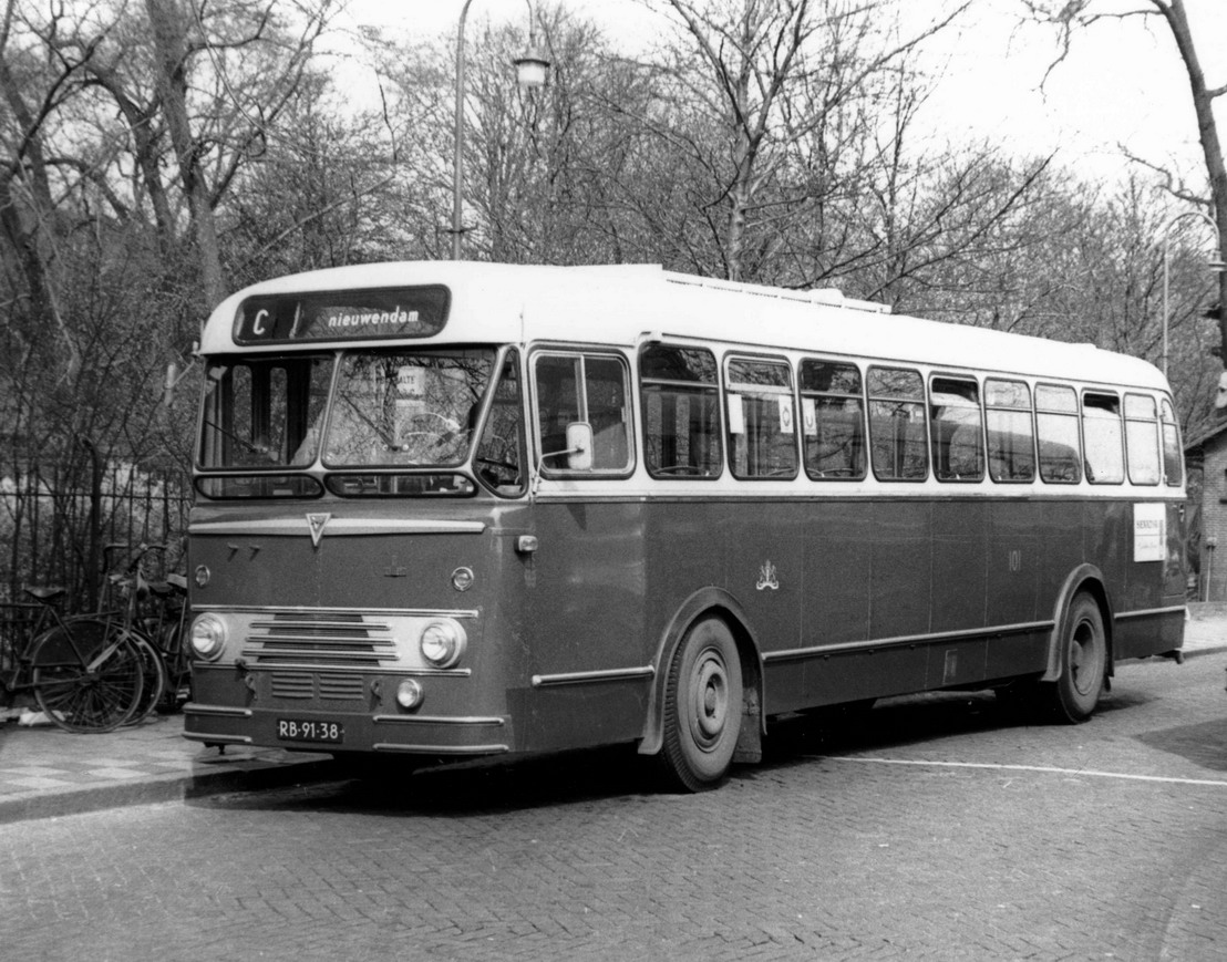 ![]() GVB 101, Lijn C, Buiksloterweg (standplaats Tolhuispont), circa 1965-1966. Fotograaf: onbekend (verzameling René van Lier). |