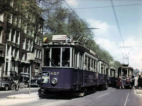 GVB 487+881-er, Lijn 2, Nieuwe Zijds Voorburgwal, 195x