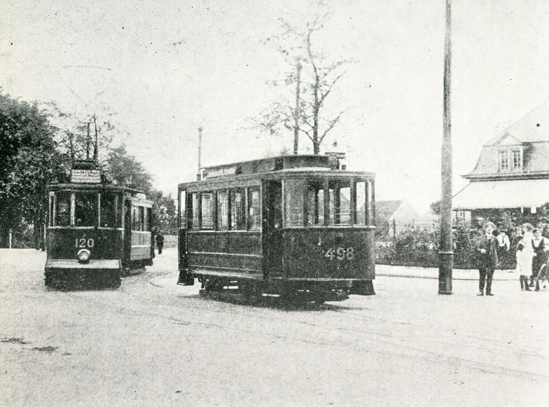 GVB 498, Lijn 17, standplaats Willemsparkstation, circa 1916